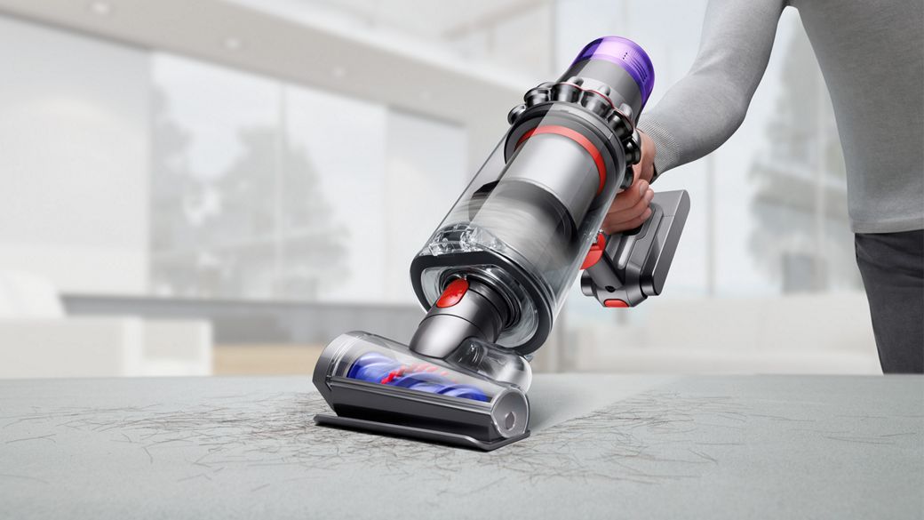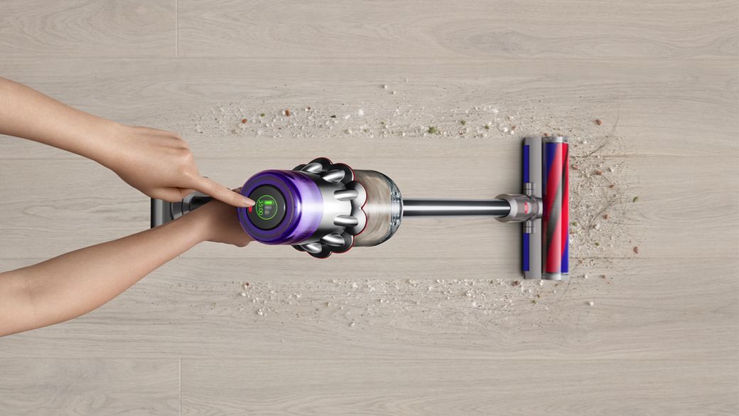 1Suction tested to IEC 62885-2 CL5.8 and CL5.9, loaded to bin full, in Boost mode internally at Dyson and at independent third-party laboratories. 2Weight compared to Dyson V11™ (includes main body, wand and cleaner head).