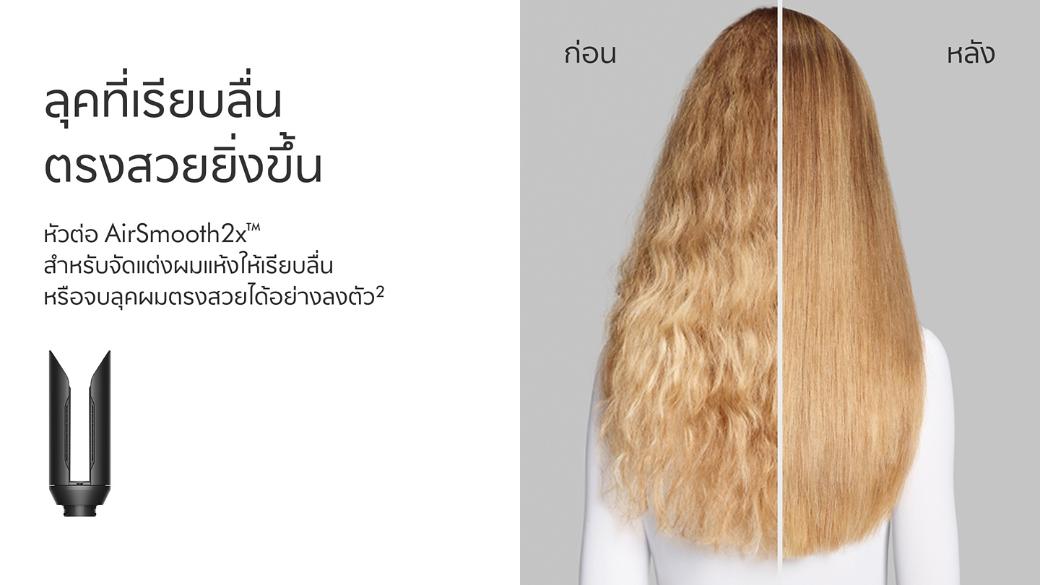 รวมหัวต่อสำหรับจัดแต่งทรงในขั้นสุดท้าย AirSmooth2x™ ใหม่ เพื่อหนีบผมตรงโดยใช้แรงลมเท่านั้น2